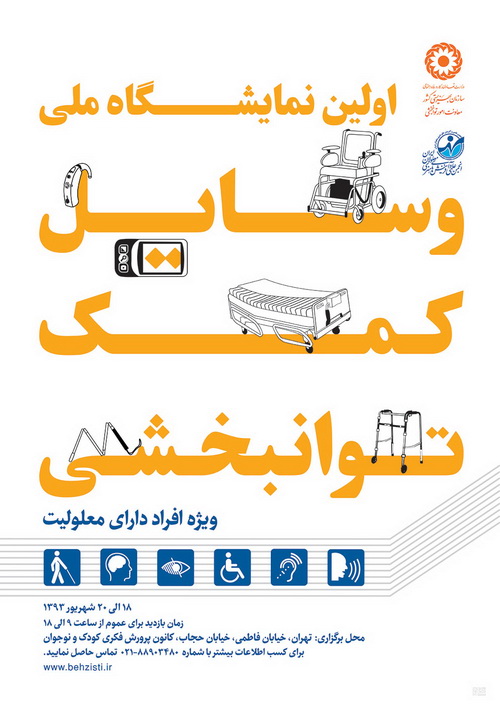اولین نمایشگاه تجهیزات توانبخشی سازمان بهزیستی از 18 تا 20 شهریور ماه سال جاری از ساعت 9 الی 18 در کانون پرورش فکری کودکان و نوجوانان واقع در خیابان حجاب دایر میباشد